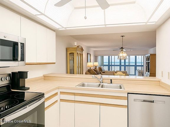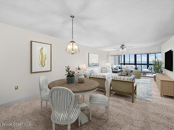 Welcome to Merritt Towers, a highly sought-after gated waterfront community centrally located on the Space Coast. PRICED TO SELL! CHECK OUT THE VIEW! From the moment you enter, panoramic views of Sykes Creek/Newfound Harbor. Enjoy a front row seat to rocket launches, cruise ships, dolphins & boaters. Watch the sunrise sipping your coffee on your private all-season balcony. Spacious primary bedroom with access to balcony, en suite bathroom featuring double sinks and walk-in closet. NEW STAINLESS APPLIANCES. The living/ dining area open to a private balcony and provide additional living space. Assigned carport. Well maintained and fully-funded association. Walk to mall, bank, restaurants, new Health First Hospital being built nearby. New Amphitheatre. 2 waterfront pools. North pool heated year round.Main Clubhouse with full kitchen & activities. Tennis/pickleball/shuffleboard. Dog Park, Walking Pier. EZ drive to SpaceX, Blue Origin, Port, KSC, Beaches, Cocoa Village well funded and maintained association. Walk to dining, mall, bank, Veterans Memorial Center. New hospital to open 2027, New Amphitheatre. Two beautiful waterfront pools. North pool heated year round. Join in the weekly water aerobics. Main Clubhouse with full kitchen and activities.