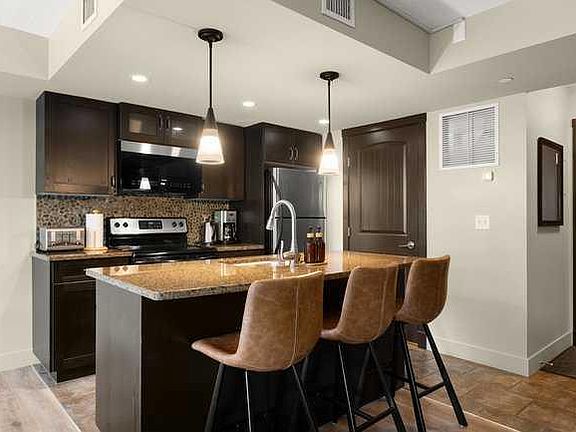 This bright and spacious two-level condo at Copperstone Resort offers the perfect mountain escape with excellent short-term rental potential. Enjoy south-facing views, stylish finishes, and turnkey convenience—use it for your own getaway and offset costs when you're not here. The open-concept main level features an upgraded kitchen with granite countertops, a large island, and stainless steel appliances, flowing into the dining area and generous living room with a cozy stone fireplace, a handy desk nook—ideal for remote work, and a Cabinet Bed to accommodate additional guests. Step out onto the sunny south-facing deck and take in spectacular mountain views. Upstairs, the Large Primary Bedroom offers ample closet space and a 4-piece ensuite with a sizeable vanity. A second bedroom, spacious main 4-piece bathroom, complete the upper level. Additional features include in-suite laundry, underground parking, and a secure storage cage, all in a pet-friendly complex. Zoning allows short-term rentals, with the flexibility to self-manage or use the on-site management company. Offered fully furnished with housewares, electronics, and linens for a true turnkey experience. Copperstone Resort amenities include an outdoor hot tub, BBQ area, firepit, fitness facility, and secure parkade. Located in the quiet hamlet of Dead Man’s Flats along the Bow River—just minutes to Canmore, Kananaskis, world-class skiing, restaurants, and shopping. Price includes GST