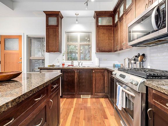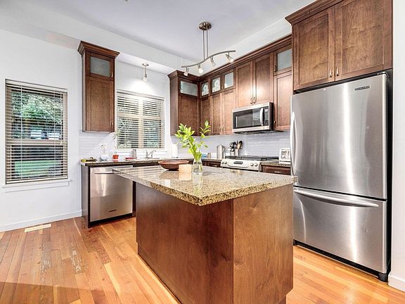 Large private yardOverheight ceilingsBrick feature wallChef-inspired kitchenGranite islandGas stoveKing-sized bedrooms