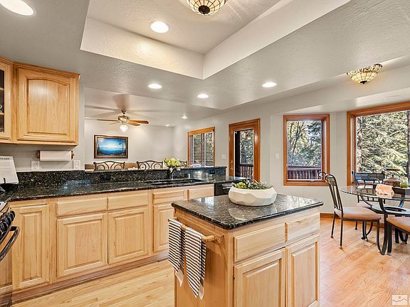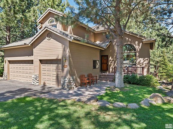 This quality mountain retreat in Galena Forest Estates features soaring high ceilings, large windows and gorgeous hardwood floors. The upper deck off the great room is perfect for entertaining with beautiful views of the surrounding forest. Outdoor space is serene and a perfect blend of the natural forested landscape, lush lawn and paved pathways. Kitchen offers granite counters, a kitchen island, breakfast bar, dining nook and opens to the family room., Primary bathroom has two sinks, plenty of cabinets for storage, jetted tub, walk-in shower and large walk-in closet with built-in shelves. A recreation room located in the daylight/walkout basement includes a private bedroom. Sale of home includes the kitchen refrigerator, washer and dryer, plus a second refrigerator and freezer in the garage. Galena Forest offers extensive outdoor recreation, including hiking, skiing, snowshoeing, cycling and mountain biking. Close to Lake Tahoe, golfing, schools, shopping and the airport. You will love being nestled in the pines, enjoy the mountain lifestyle and the serenity of the forest— one of the few forested areas in Nevada! HOA dues for 2024 are $200, due to a HOA credit of $130.00, HOA or Sellers do not know what future annual HOA dues will be.