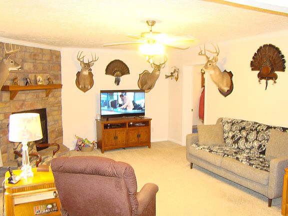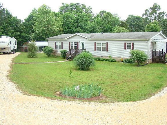 Super nice 2006 3 bedroom 2 bath double wide on a permanent foundation and 35 wooded acres. There is a 24 x 30 2-car detached garage with electric, a 2 car free standing carport, an above ground storm shelter with electricity, gas log fireplace, fruit trees, lots of flowers and a really nice garden space. The property is mostly wooded with a spring fed creek along the back property line. The land has lots of deer and turkeys.
