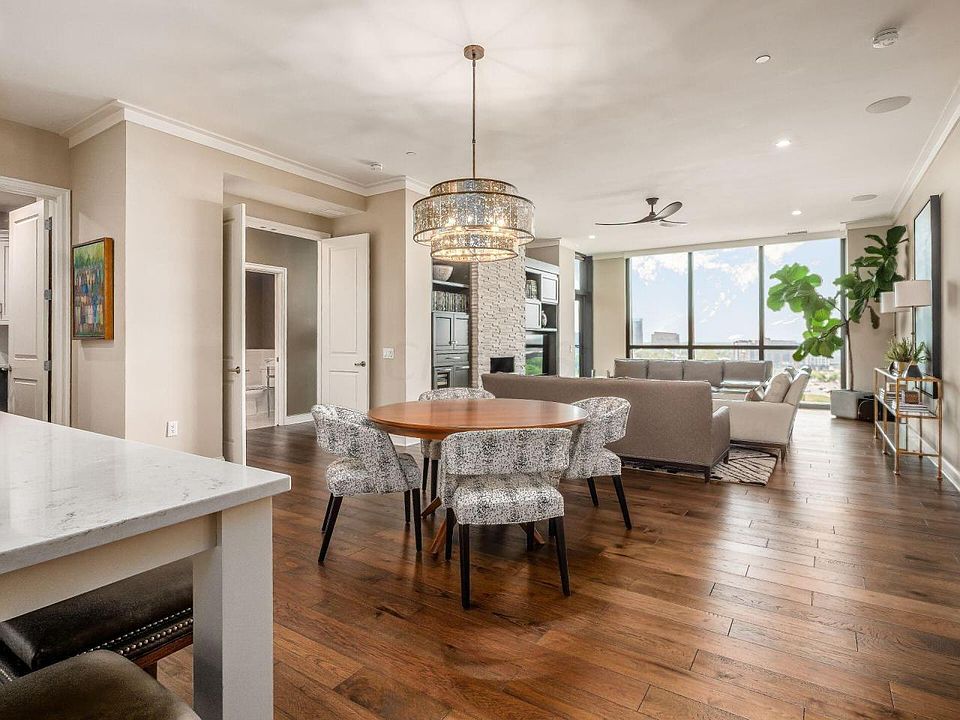 Don't miss the breathtaking views from this 10th floor luxury condo in Parks Edge; Columbus' most desirable residence! Offering 2 bedrooms, 2.5 bathrooms 2,000 sqft of living space w/floor-to-ceiling windows in every room an open floor plan overlooking downtown Columbus the Scioto Mile. Gorgeous chef's kitchen features custom-built cabinetry, Wolf range hood and an oversized island overlooking living dining spaces. Spacious owner suite w/spa-like bathrm features walk-in shower, his her vanities two WICs! Custom built-ins, remote-powered shades, built-in surround sound the highest-end finishes throughout! + 100% tax abatement 2 parking spaces! Parks Edge amenities include 24hr concierge, rooftop pool, fitness facility, residents lounge, guest suite more!