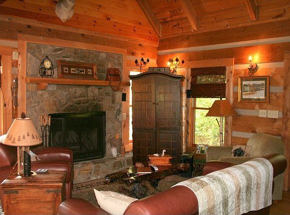 This lovely log cabin sits at the end of the road on the way to St. John's Church on 5.64 private acres with incredible view of the Watauga River, the valley and surrounding mountain view.In the heart of Valle Crucis, river access,close to school, this unique property is the perfect home. The masonry stone fireplace adorns the living room with its warm wood and hardwood floors, exposed beams and cathedral ceiling. House grosses $30,000 annually for the past 3 years and is ready to be purchased and you can have a vacation home that will help pay for itself. Unfinished workshop, claw tub, A++++