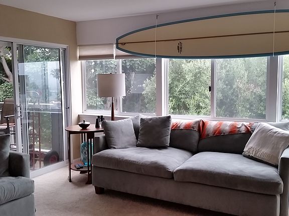 Spectacular ocean and harbor views from this upgraded 1 bedroom end unit with den. The den has been remodeled with a built in Murphy bed and closet. This awesome beach home functions as a 2 bedroom unit. Great ocean views from living room, large deck, bedroom AND kitchen. A must see!. This Seascape One location offers ocean views and surrounding trees for privacy. The kitchen has been updated as well as the large full bath. The bath includes double sinks and a deep soaking tub/shower combination. There are 2 side by side parking spaces w/ storage in the gated garage. Also included is a storage room on the deck. The complex has a year round heated pool, sauna and jacuzzi overlooking the ocean. This resort style complex is just a few steps away from the beach, bike path, marina, restaurants and pier. Enjoy fantastic sunsets along with harbor activities from the living room and deck including 4th of July fireworks and the Christmas boat parade!