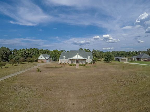 Beautiful ranch style home situated on 3 acres in Hallsville ISD. Main house offers 3 bedrooms, 3 full baths, formal dining room/office, breakfast nook, large master bath with walk-in closet, tall ceilings, fresh exterior paint, updated guest bath, saltwater gunite pool w/aluminum fencing and a bonus room while the 2-bay workshop offers an upstairs 1 bedroom, 1 bath apartment. Shop is 28x32 and has air compressor plumbed throughout, 220 outlet and table height 20amp outlets. Make this your new home!