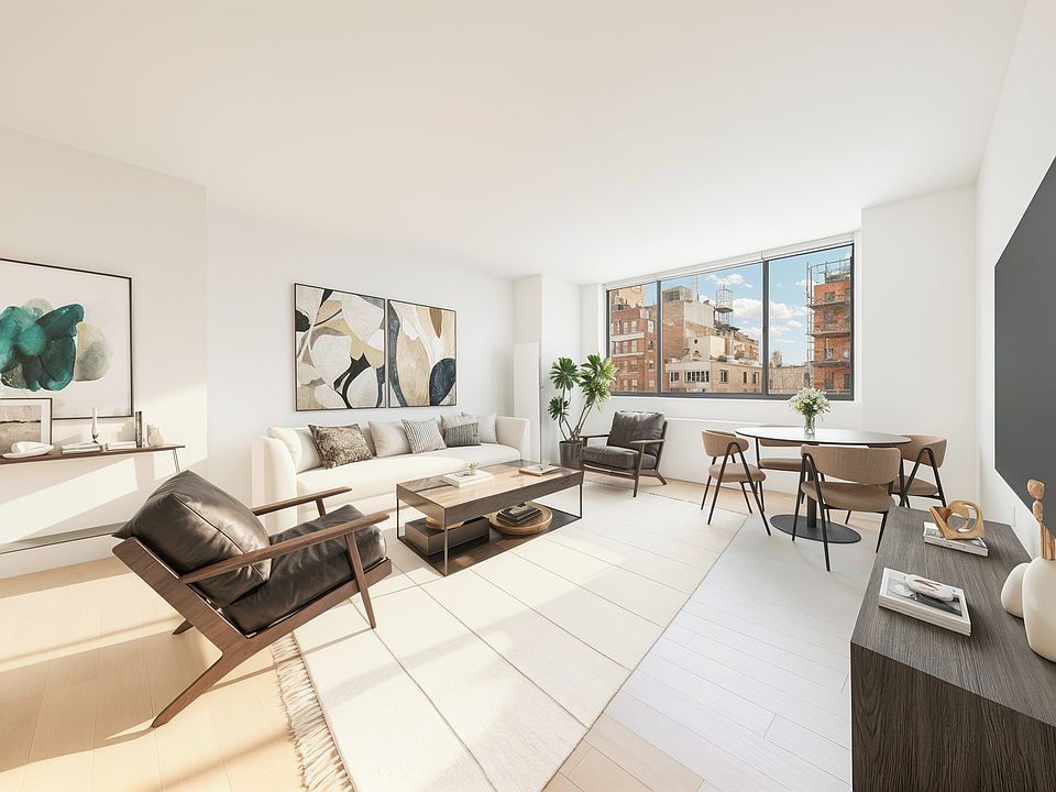 Experience contemporary sophistication at The Grove, where refined design meets the timeless energy of West Chelsea. Perfectly situated on West 19th Street between Seventh and Eighth Avenues, this corner one-bedroom home is flooded with natural light thanks to its multiple exposures, creating an airy, open feel throughout.