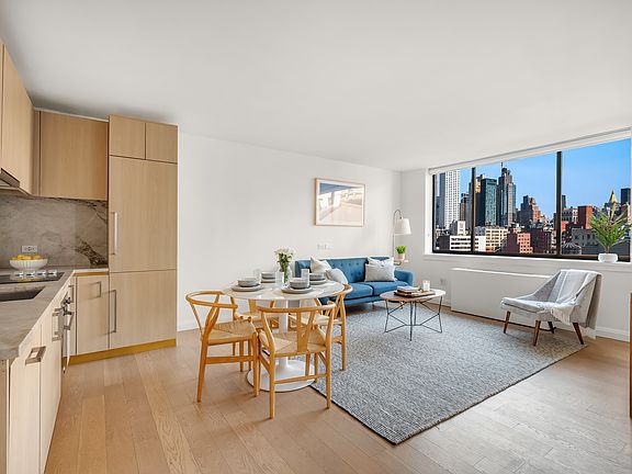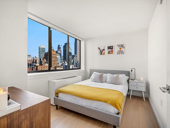 Experience contemporary sophistication at The Grove, where refined design meets the timeless energy of West Chelsea. Perfectly located on West 19th Street between Seventh and Eighth Avenues, this bright and spacious one-bedroom home offers an exceptional blend of comfort, craftsmanship, and convenience. Many residences showcase sweeping skyline vistas, including dramatic views of the Empire State Building and Downtown Manhattan.
