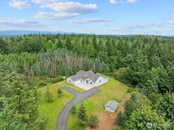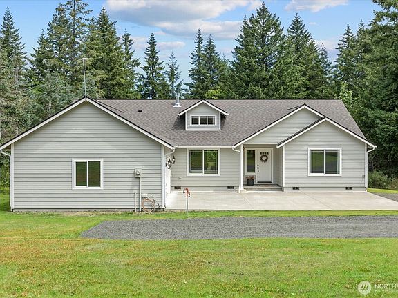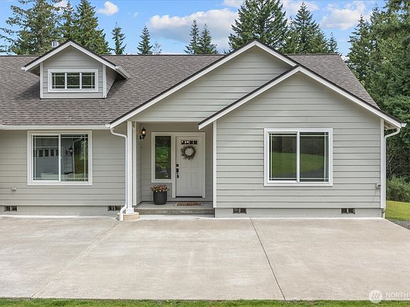 Welcome to your own private retreat! Nestled on over 6 acres of serene wooded grounds, this picturesque 4-bedroom, 2.5-bath home has it all! High end cabinets, quartz countertops, and LVP floors compliment the soaring ceilings & desirable split bedroom floor plan w/ the primary on one side & 3 additional BRs on the other. Savor cozy winter days by the gas fireplace or relaxing in the soaking tub. Enjoy summer days w/ central air cooling or relaxing on the low-maintenance composite deck, complete w/ 220V wiring for a hot tub, propane BBQ hookup, & cable for an outdoor TV. There’s designated RV parking w/ water & septic hookup, & plenty of space for horses or a shop. If you’ve been searching for privacy & room to roam—this is it. Welcome home