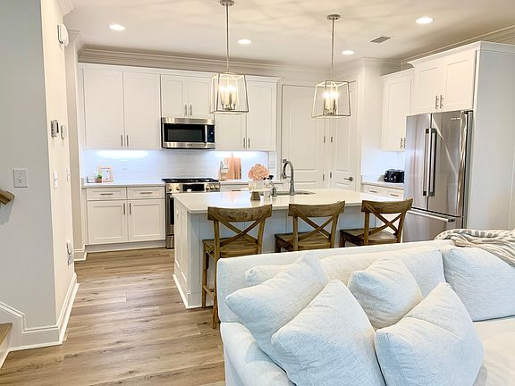 The home features 3 spacious bedrooms, 2.5 bathrooms, and a bright loft area perfect for a home office, playroom, or reading nook. The open-concept living area is ideal for entertaining, with a contemporary kitchen featuring quartz countertops, premium appliances, and a large island that flows into the dining and living spaces.