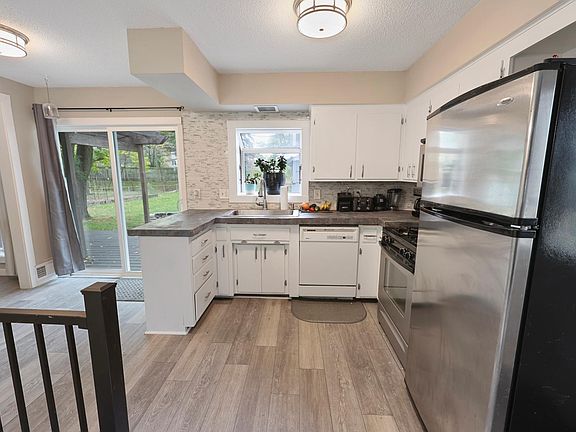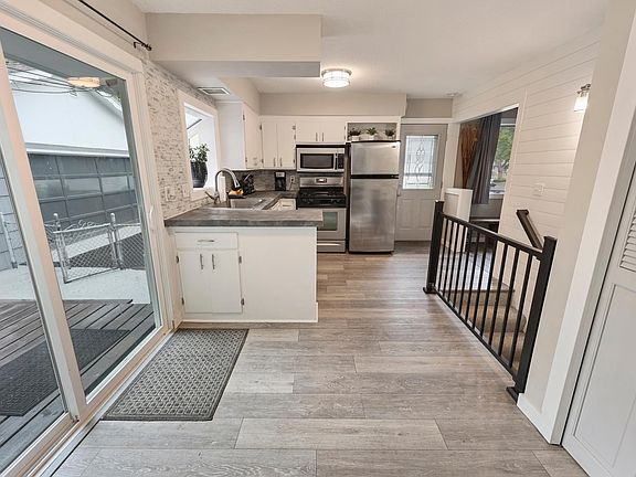 Step outside to your backyard oasis, a fully fenced backyard complete with raised garden beds, fire pit, and a storage shed/chicken coop. Enjoy your morning coffee or evening cocktails on the new patio under the lighted pergola. Garage is fully finished & heated. Located in a quiet neighborhood, this move-in-ready home is close to walking & biking trails, parks, and schools.