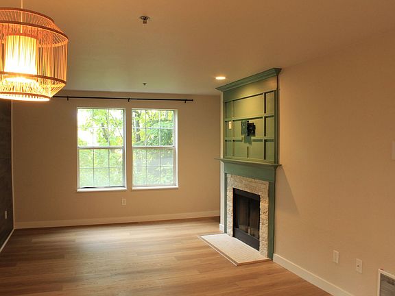Private balconyCozy fireplaceModern countertopsHardwood flooringNew showersIn-unit washer and dryerStainless steel appliances