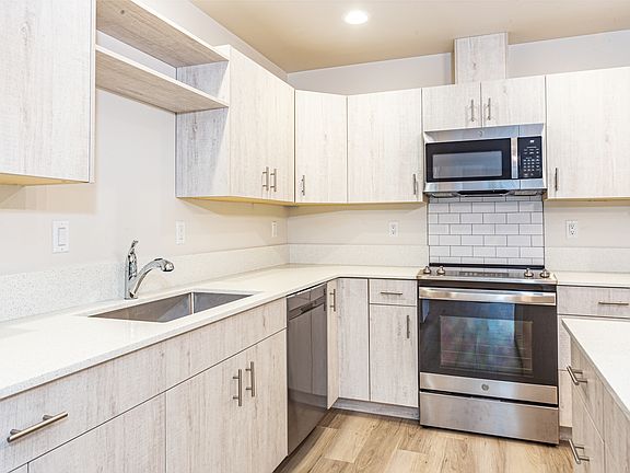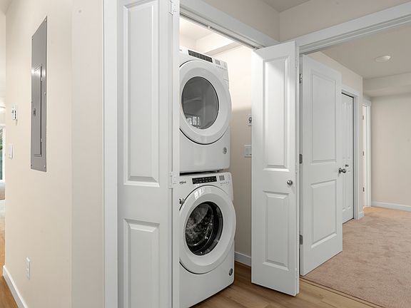 Enjoy the territorial views of the forest and winery from this second-floor apartment. As you walk in, the large entry space also doubles as the laundry area with a full-size washer and dryer conveniently in a closet just off the main bedroom. The main bedroom features a private, 4-piece bath with an undermount sink. The open concept main living space has a large, modern kitchen with eating bar and white quartz counters, white oak cabinets and stainless-steel appliances. The kitchen then flows into the dining space. The open concept allows residents to entertain in the living room while not feeling left out. The second 4-piece bath is centrally located off the main living space and allows for easy access to everyone. While the 2 bedrooms are carpeted, the remainder of the space is floored using luxury vinyl planks, an easily cleanable surface that is both durable and attractive.