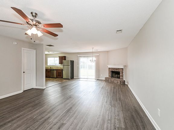 Wood-burning fireplaceFenced backyardStainless steel appliancesGenerous walk-in closetLaminate flooringCeiling fanDouble sink