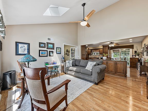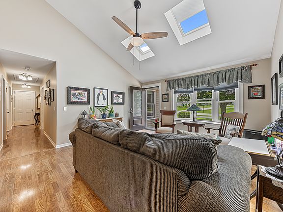 Welcome to this beautiful sprawling ranch set on a picturesque 1/2-acre lot with serene views of Chase Lake! Perfectly designed for both comfort and style, the interior offers an inviting layout filled with natural light and timeless details including wood laminate flooring, crisp white trim, and 6-panel doors. The spacious living room impresses with vaulted ceilings and an open floor plan into the kitchen, which features custom cabinetry, granite countertops, an island, and a dinette-ideal for everyday living and entertaining. The cozy family room with a fireplace creates a warm gathering space, while the 3-season sunroom overlooks the backyard and offers the perfect spot to relax. There are 4 generously sized bedrooms, including a primary suite with a walk-in closet and a heated bathroom floor, along with abundant closet space throughout the home. Outside, you'll find an oversized heated 2.5-car garage, two sheds, fruit trees, and a large fenced-in yard with a deck perfect for entertaining. Additional highlights include unincorporated taxes, meticulous upkeep, a sought-after Plainfield School District location, and close proximity to parks, the mall, interstate access, dining, and more. This beautifully maintained ranch offers the perfect blend of style, functionality, and serene lake views-your dream home awaits!
