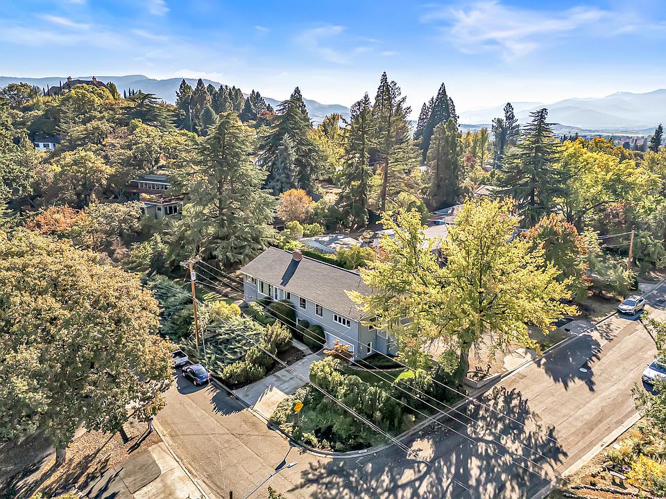 Welcome to this 1950' s Daylight Rambler located off a quiet street in East Medford. Great territorial and mountain views from this larger .29 ac lot. Enjoy all one level living with a large rec room on the lower level. The perfect split floor plan with primary bedroom leading out to the covered back porch & hot tub. Home features a large country kitchen with newer appliances and eating area. The home also has a formal dining room which leads into the welcoming living room with a cozy fireplace. Hardwood flooring throughout. Enjoy the sunroom which takes you out to the back patio with views of the surrounding mountains. Some other home features, new 30 year roof in 2016 and new heat pump in 2020. Lots of storage in garage, attic and closet space. Seller has done a great job with current upgrades and maintenance. Easy care mature landscaping surrounding the home. In addition to the 2 car garage there is abundant off street parking with access off of Capital Av. and Bradford Way.