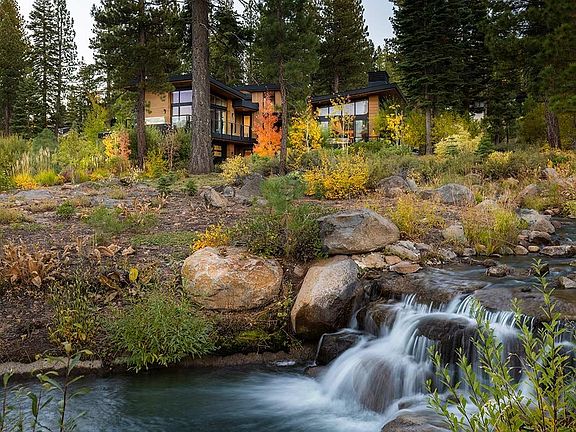 This mountain contemporary Martis Camp home is complemented by a rare mountain classic: a stream that doubles as its boundary line. It’s a sight (and sound) consumed by a wraparound porch with views of Lookout Mountain from one stretch of patio to the Carson Range and Martis Valley from another, complemented by a firepit that makes sunsets and stargazing sessions with the kids something to remember. This 4,161-square-foot home’s kitchen has an abundance of storage as well as a commanding view of the great room and its artistic fireplace that’s both functional and fashionable. The home is attractively arranged into three levels accommodating 5 beds, 5.5 baths, 5 patios/decks and a stunning media room with its own observation deck and firepit. Located on a quiet cul-de-sac a very short walk to the Springs Pavilion and Tennis Pavilion and a short drive to the ski hill, Martis Camp Express Chairlift and Lookout Lodge, this home’s interior features are as impressive as the structure itself. Kitchen appliances include Wolf, Sub-Zero and Bosch and floors are a creatively mixed pattern of reclaimed oak plank. There’s a private hot tub patio with outside shower, bar with refrigerator and beer tap, butlers pantry with Sub-Zero wine storage, a large walk-in pantry, controlled lighting systems, office space and two full master suites, one with a steam shower. All this and more located in a community Forbes calls “Possibly the best four-season private community in the U.S."