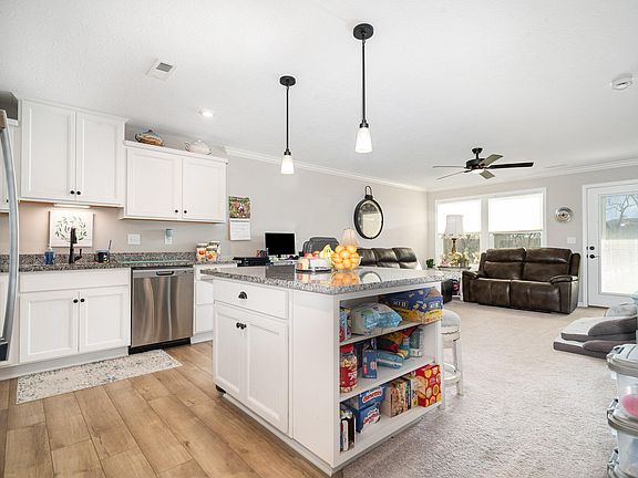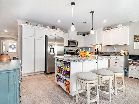 Attached garageWooded viewStainless steel appliancesCustom window treatmentsKitchen with an islandGleaming granite countertopsOpen dining area