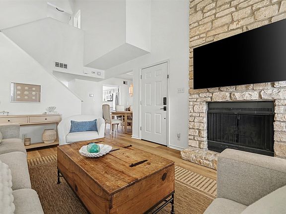 A truly private, FULLY UPDATED oasis tucked away in the heart of Tarrytown. The location is perfect: live near downtown while enjoying the quieter pace in this tranquil enclave of just 9 residences. Just blocks to the Lyons Muni golf course & less than a mile to Lake Austin & nearby eateries like Maudie’s, Deep Eddy’s & Zeds; or head west & to enjoy Mozart’s, Quince & the Walsh Boat landing. All of this convenience (including the #18 Bus stop just a block away!) With 2 large bedrooms, 1.5 remodeled baths, this METICULOUSLY kept home is ideal for someone needing a dedicated office/guest room, a growing family or roommates! Upon entry, you’ll be greeted with soaring vaulted ceilings & abundant light. The living room features a magnificent stone fireplace & plenty of room for seating, creating a cozy atmosphere to relax & unwind. Residents love the attached carport (2 side-by-side spaces directly below the unit w/ stairs to the back entrance. This unit is the ONLY unit with a 17’ x 4.5’ storage locker at the rear of the carport, perfect for outdoor enthusiasts or swapping out wardrobes! What really sets this home apart is the large, open kitchen (goodbye cramped, galley-style quarters), featuring stainless steel appliances, dedicated pantry & abundant counterspace. Off the kitchen you’ll find an extra-deep laundry closet with shelving & room to accommodate a full-size washer & dryer….No more laundromats or shared laundry centers! The dining room has space for all of your guests. Head upstairs to the primary bedroom, which boasts a fabulous walk-in closet, eastern exposure & wood floors. The upstairs bathroom has a gorgeous, spacious tiled walk-in shower & was recently remodeled. A roomy 2nd bedroom also features wood floors & gets gorgeous natural light. The bedrooms are separated by closets; no shared walls! Enjoy quality living & location with the added financial benefit of a new hot water tank, AC & furnace; you’ll be so glad you jumped on this opportunity!