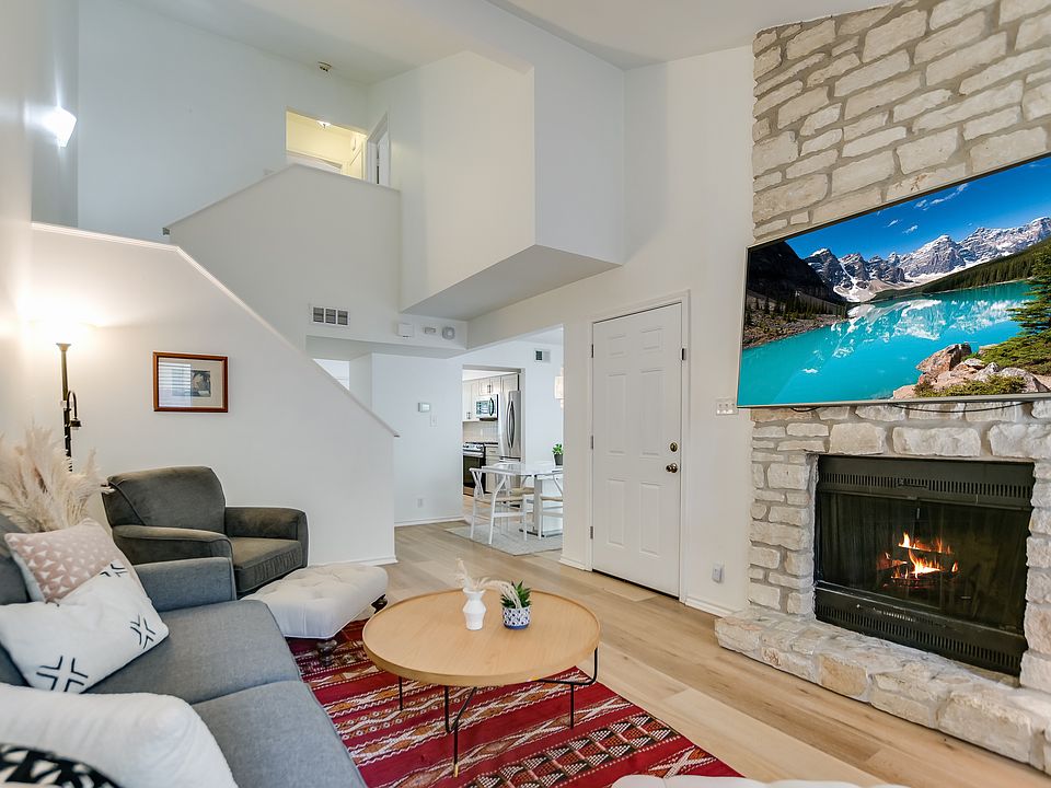 Rare opportunity to own a charming 2-bedroom, 1.5-bath condo in Tarrytown! This unique Tarrytown 2-story condo features recent upgrades, including a refreshed kitchen with stainless steel appliances, hardwood floors, and remodeled baths. Vaulted ceilings and a stone fireplace make the living space warm and inviting. Front & back doors make this townhome-style living perfect for any buyer, with easily accessible, reserved carport for 2 vehicles with ample lockable storage. Conveniently located just west of MoPac Expressway, it's within walking distance to Metro stops and the UT shuttle, providing easy access to downtown Austin. Enjoy the green space in front of the condo, perfect for dogs. Additionally, Westenfield Park, with its pool, playground, tennis courts & sports fields is just a short stroll away, offering fantastic recreational opportunities!