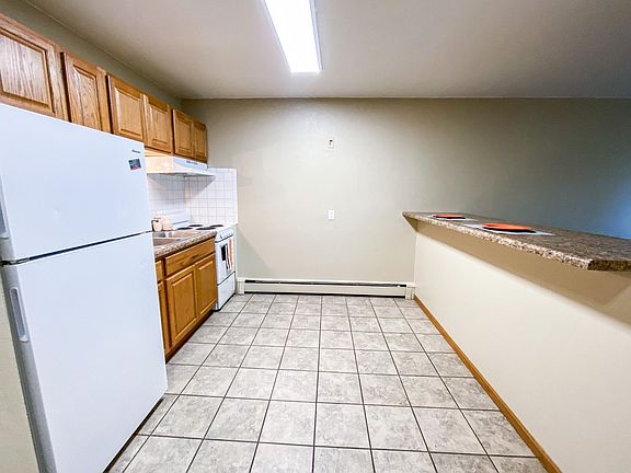 This unit includes oak cabinetry, a breakfast bar, private entry, brown LVT flooring, and shared on-site laundry facilities that can be found in the basement of one of the nearby buildings. Pets are welcome.