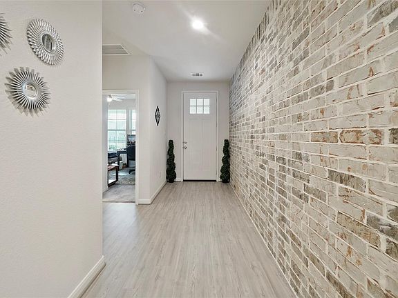 Farmhouse charm in this adorable like new home with cozy front porch in highly sought-after Stillwater! So lightly lived in it will feel like a new home. Upon entry you will find a welcoming entry hall accented with a brick wall! Kitchen, breakfast and family are bright and open and are perfect for entertaining. Kitchen features large island, pantry, gas range, gorgeous cabinetry and quartz counters. Wood like tile floors are throughout the main living areas. Primary suite features en-suite bath with a large walk-in shower, a soaking tub and an adjoining oversized walk-in closet. A true four bedroom but one could be easily used as study or flex-room. Step outside to enjoy your covered patio with no neighbors behind! Great commuting location with easy access to I-45! Zoned to The Woodlands schools!