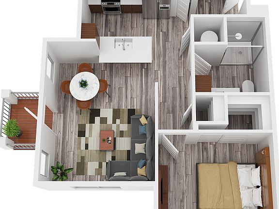 Discover the charm of the Bennet floor plan at Elm 26, our cozy yet stylish one-bedroom, one-bathroom apartment. Perfectly designed for privacy, this unit offers a peaceful retreat while keeping you just steps away from all amenities.