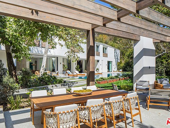 Stunning, serene, bold, and impossible-to-duplicate brand new construction Brentwood estate. Privately sited off of Mandeville on quiet Shadow Canyon Road on a remarkable, nearly flat acre protected reserve of Live Oaks and majestic coastal Sycamores, some over 100 years old. From masterful ANR Signature Collection with MasaStudio--the designers of Amangiri resort in Utah, the most exclusive getaway in America. More than 12,000 square feet thoughtfully placed above grade, with disappearing electrified Fleetwood doors, enveloping the spacious home in harmony with nature and golden light. One of the most inspired, Zen, and beautiful owners' suite bathrooms ever designed in Los Angeles. Attached 3-bedroom guesthouse doubles as Captain of Industry production office. Hollywood-chic screening room jewel with glamorous blue velvet walls. Gallery walls for modern art, expansive hotel-sized Cantera stone patio overlooking sparkling saltwater 48-foot swimmers pool w/spa. Magical outdoor cabana destination for entertaining w/fireplace & kitchen. Elevator, gym/Pilates studio w/steam shower, wine room, double-height 3-car garage, separate 4th staff garage, staff/security office, service entrance, add'l prep kitchens, Savant A/V & security. Potentially many years before another property of equivalent modern elegance, privacy, and artful refinement comes to Brentwood.