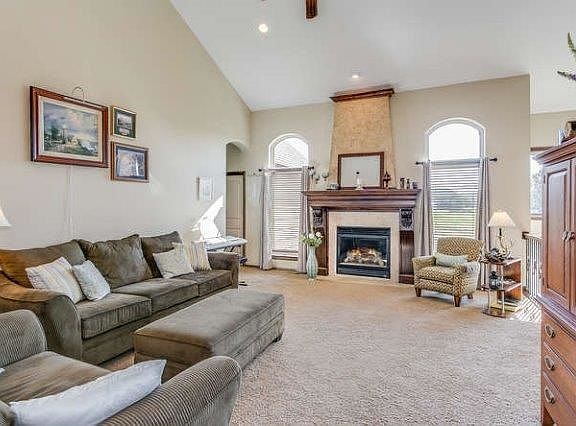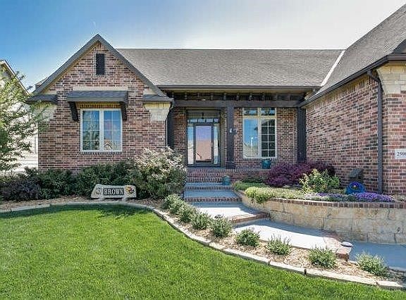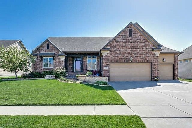 Come for a visit and stay for a lifetime! This gorgeous 5 bedroom, 3 bath, view out/mid-level walkout ranch overlooking the 10th fairway of The Oaks of Derby golf course will give you pause! From your back yard open patio or from your covered outdoor living space (gas fireplace, lighting, ceiling fan, wood ceiling), the best of all seasons can be yours! Inside, the 18' x 21' kitchen boasts of its scrumptious granite-topped island/eating bar and soft-close cabinetry, oversized walk-in pantry, and oak hardwood floors. Handy, too, is the separate laundry room with folding counter and a garage entry foyer complete with built-in coat hanging and boot area! Tall, tall ceilings in the spacious living room give you the palatial feel you've dreamed of and the all-encompassing master suite houses walk-in closet, separate tiled shower, jetted tub, and elongated "his and hers" sinks --granite, too! Downstairs a huge family room with a second gas fireplace welcomes everyone! Room for game tables, Game-day watching, and bar tending (dishwasher and frig remain!). Loads of storage, custom wood blinds, sprinkler system, and so much more await you here! Schedule your appointment today!