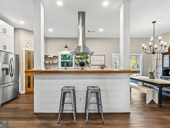***Open House: Saturday 11/22 11am-1pm.*** Welcome to your Monroe getaway! This beautiful ranch home sits on 2 acres of serene land and includes a second residence, a 24x40 pole barn with a dedicated storage room - a rare find with endless possibilities! Step up to the charming full-length front porch, perfect for relaxing in the morning with a cup of coffee. Inside the main residence, you're greeted by an open-concept living room and kitchen. The living room is bright, spacious, and features a stunning brick fireplace, creating a warm and inviting atmosphere. The kitchen is truly a chef's dream-equipped with stainless steel appliances, a farmhouse sink, breakfast bar, and an eat-in dining area. Natural light fills the space, making it the heart of the home. Down the hall, you'll find the primary suite, filled with natural light and plenty of space to make it your own. The primary bathroom offers double vanities and a large tiled walk-in shower. Two additional spacious bedrooms and a full hallway bathroom complete the main home. You'll also find a convenient laundry room in the hallway, perfectly positioned for easy access. Off the dining area, step outside to a back patio, ideal for relaxing. The main residence also includes a carport for added convenience. But it doesn't stop there! This property also includes a second residence-an adorable 896 sq ft home with everything you need. Step inside to a cozy living room with a fireplace that flows into the beautifully designed kitchen. Off the living room is a spacious bedroom, a full bathroom in the hallway, and a large walk-in closet. The kitchen also connects to a laundry room and pantry, offering excellent storage and functionality. This home also features its own carport. Outside, enjoy 2 acres of open, usable land, complete with a 24x40 pole barn-perfect for storage, a workshop, hobbies, or additional equipment. Don't miss this incredible opportunity to own two beautiful homes on acreage in Monroe! Properties like this are rare-come see all the space, charm, and versatility this one has to offer.