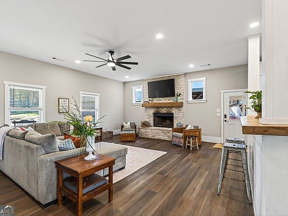 Stunning brick fireplaceStainless steel appliancesEat-in dining areaBreakfast barCharming full-length front porchLarge tiled walk-in showerSecond residence