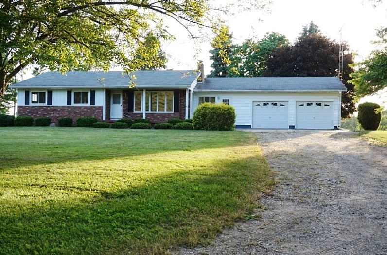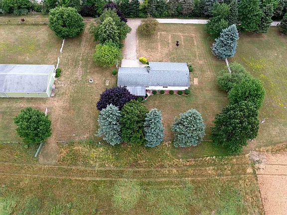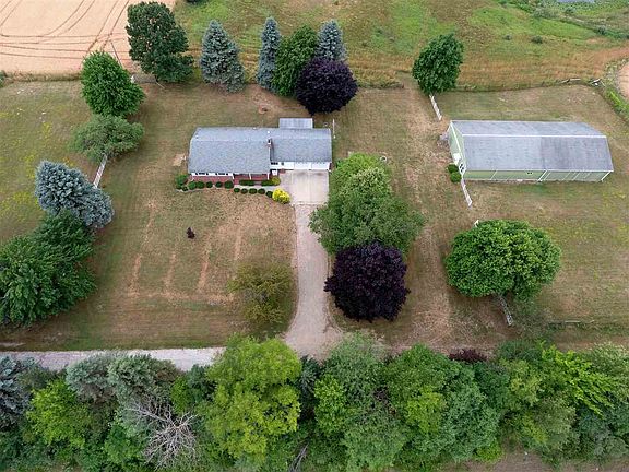 County ranch home in move in condition sits back off the road with a very large pole barn. The home has been professionally painted inside and new carpet throughout. spacious kitchen and living room. Three season room has a gas heating stove and completely finished for additional living space. The basement has some drywall installed for additional living space and a large work room nice open basement. The landscaping has been maintained and you will enjoy the mature trees and fenced yard while setting on your covered back porch. The pole barn has electric with dirt floors, the pole barn has 3440 square foot of space very large barn.