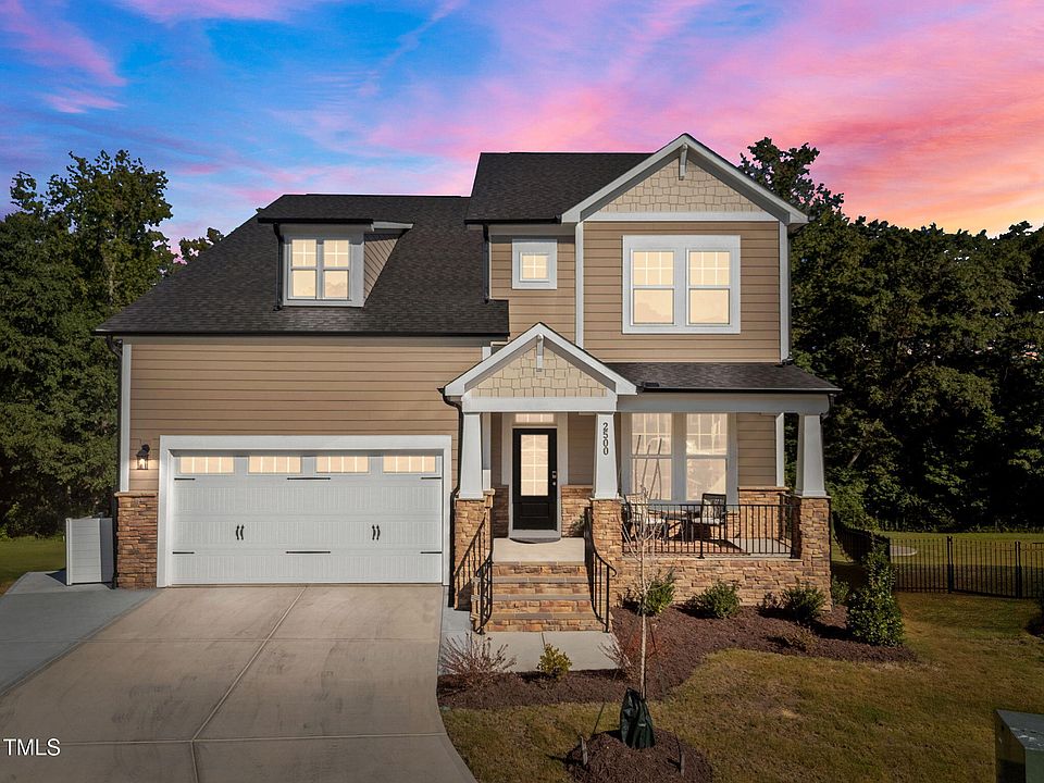 Better than new, this true six-bedroom gem showcases an awesome finished walkout basement on an incredible .31-acre wooded cul-de-sac homesite, where a rocking chair front porch and stone-accent exterior warmly welcome you home. This home truly has it all, featuring an ideal open-concept floorplan with all the bedrooms, baths, and gathering spaces you could want, gorgeous high-end finishes throughout, and a coveted yard with serene wooded views. The main level offers a private guest suite with full bath along with a dedicated study for effortless work-from-home convenience, complemented by durable and beautiful luxury vinyl plank flooring flowing throughout. The gourmet kitchen impresses with a large center island, soft-close cabinetry, sleek tile backsplash, quartz countertops, and stainless steel appliances including a five-burner gas cooktop and wall oven/microwave, all open to a sunny dining area and spacious family room with gas fireplace and built-in storage. All lighting is on dimmers, and stylish, on-trend tile work elevates every bathroom, while an awesome mudroom drop zone with built-in storage adds everyday functionality. Oak stairs lead upstairs to even more gorgeous LVP flooring and a light-filled loft, anchored by an oversized primary bedroom with tray ceiling and an opulent en suite featuring dual vanities, a stand-alone soaking tub, walk-in shower, private water closet, and a huge walk-in closet, plus generously sized secondary bedrooms and two additional full baths that provide space and privacy for everyone. The unbelievable finished basement includes an additional bedroom and full bath, a versatile recreation area, and a large space ready for future expansion such as a home gym or movie theater. Outdoor living shines with an awesome screened porch and lower-level patio overlooking a huge, flat, and usable backyard with a coveted natural tree line offering serene privacy, all within a neighborhood boasting a pool, clubhouse, playgrounds, and walking trails, and just minutes from top-rated Apex Friendship schools.