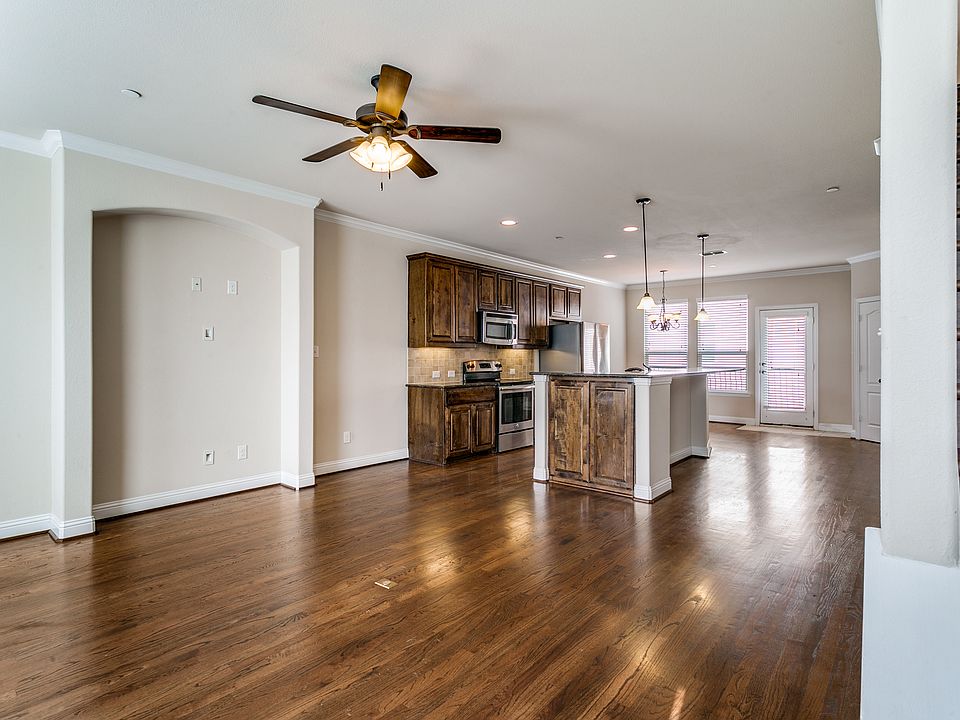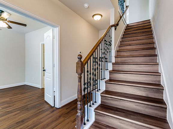 Description: Stunning Condo in an amazing location is ready for its new occupant! Entertainers dream features open kitchen and spacious family room. Gorgeous kitchen has an ample dining area, breakfast bar, extensive granite, walk in pantry, and balcony. First floor bedroom with en-suite bathroom and walk-in closet makes a great guest room or office. Large primary bedroom with en-suite bathroom features deep jetted tub, separate shower, and walk-in closet with custom built-ins. Primary bedroom, 3rd bedroom and laundry area on third level. Hardwood floors in all living areas and luxury vinyl in the secondary bedrooms & stairway. Attached two car rear entry garage.You can't beat the location, close to restaurants (Saltgrass, Chick Fil A), shopping (Target, Costco,Half price book), quick access to 121 and I35 just to name a few. Downtown living without the downtown prices. HOA covers all outside maintenance, lawn care, water and trash!