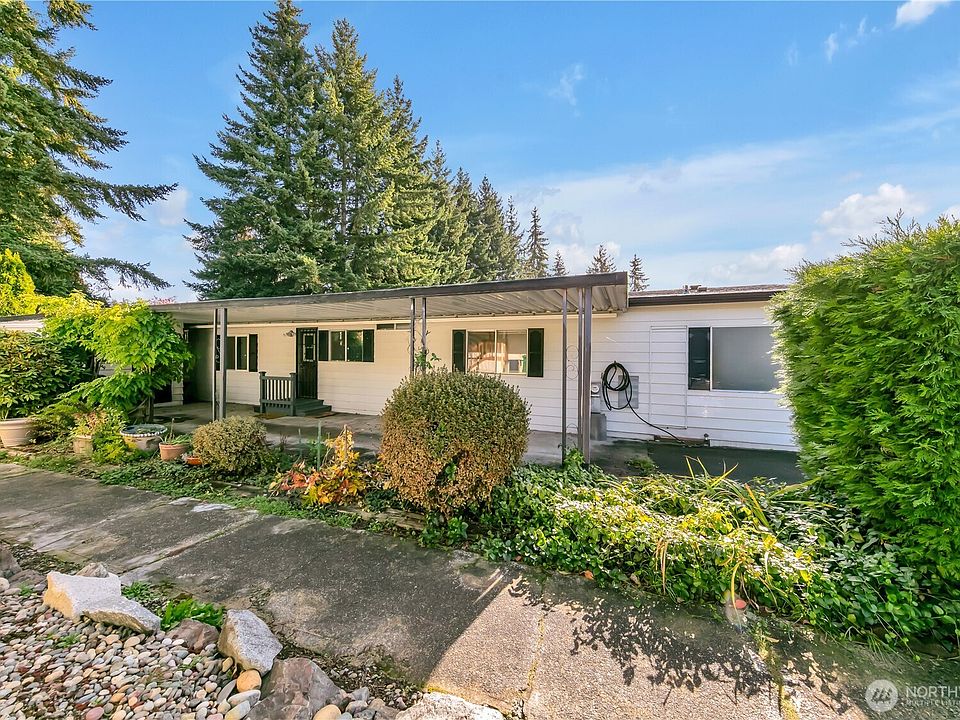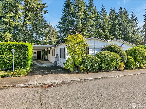 Extremely SPACIOUS open floor plan in the wonderful 55+ Kloshe Illahee community! This TRIPLE WIDE has BEAUTIFUL VIEWS of the park. Massive primary suite has bathroom w/soaking tub, double vanity, huge WIC & another ROOM, could be office or sitting room. Guest room is nicely sized w/WIC & attached full bath. Great for entertaining w/large kitchen, dining room & BAR. New roof, newer water heater, crawl space w/new insulation, new laminate floors & carpet. AC & Wood stove to keep you comfy. Relax & enjoy the big enclosed patio. Large shed for storage & carport. Clubhouse offers an exercise room, pool, hot tub, sauna, pool tables, theater room, & party room w/kitchen! Close to I-5, shopping & dining! BOM~ buyers backed out DAYS before closing.
