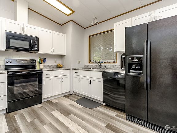 Welcome to this wonderful home located in a highly desirable 55+ community of Kloshe Illahee Park! This beautiful & affordable 3-bedroom 1.75 bath home will win you over as soon as you see it. Natural light floods the living room consistently. Spacious primary bedroom with huge closet. Remodeled kitchen & bathrooms; new carpet. Heat pump with AC & lots of appliances included (washer, dryer, refrigerator, dishwasher, stove & m/w). 2015 roof, interior freshly painted. Spacious patio with cover and large shed for ample storage. Unique amenities at Clubhouse: pool, spa, sauna, exercise room, trail & fun social events. It’s close to restaurants, shopping, freeways & medical facilities. What else could you ask for? Make this home yours today!