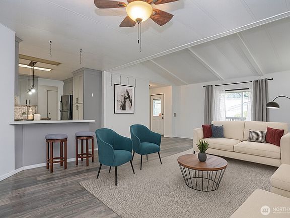 Welcome to the desirable Kloshee Illahee 55+ community and this updated 1,248 SF home. The inviting floor plan showcases a spacious updated center kitchen with walk-in pantry, new LVP flooring, fresh exterior paint (2024), a new roof (2024), & remodeled bathrooms. The primary suite includes a generous walk-in closet, while the secondary bedroom is thoughtfully positioned for privacy. Outdoor living shines with a large entertaining deck, fully fenced yard ideal for pets, and a powered storage shed. New Heat Pump & H2O in 2022. Community amenities feature a clubhouse, sauna, hot tub, library, pool tables, & an outdoor pool with year-round activities. Conveniently located minutes from I-5, Hwy 18, Tacoma, & SeaTac Airport.