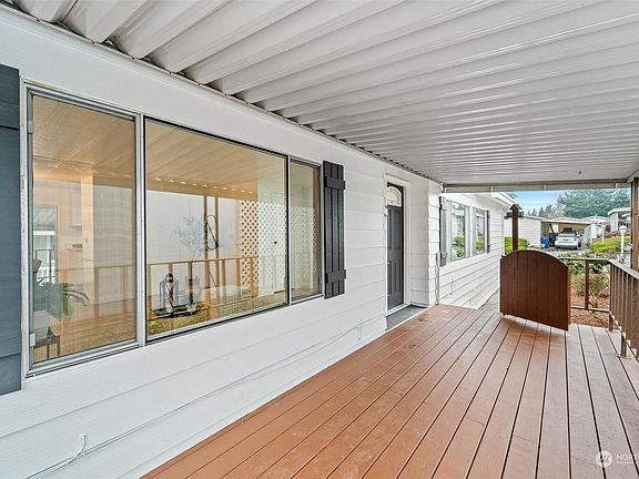 Welcome Snow Birds! This is a beautifully updated home in Kloshe Illahee (55+) park. With 2 generous bedrooms & 2 full bathrooms, it offers comfort & convenience. The primary bedroom features 2 large closets & a spacious bath with a walk-in shower & soaking tub. The guest bedroom & bath offer privacy & complete separation. Enjoy mature landscaping & a PNW deck for entertaining. Recent updates include new roof, floors, interior & exterior paint, kitchen cabinets, lighting, plumb fixtures & appliances, enhancing functionality & aesthetics. Kloshe Illahee boasts a clubhouse with pool, spa, & activities and so much more. Great place to Snowbird! Welcome to your next home!