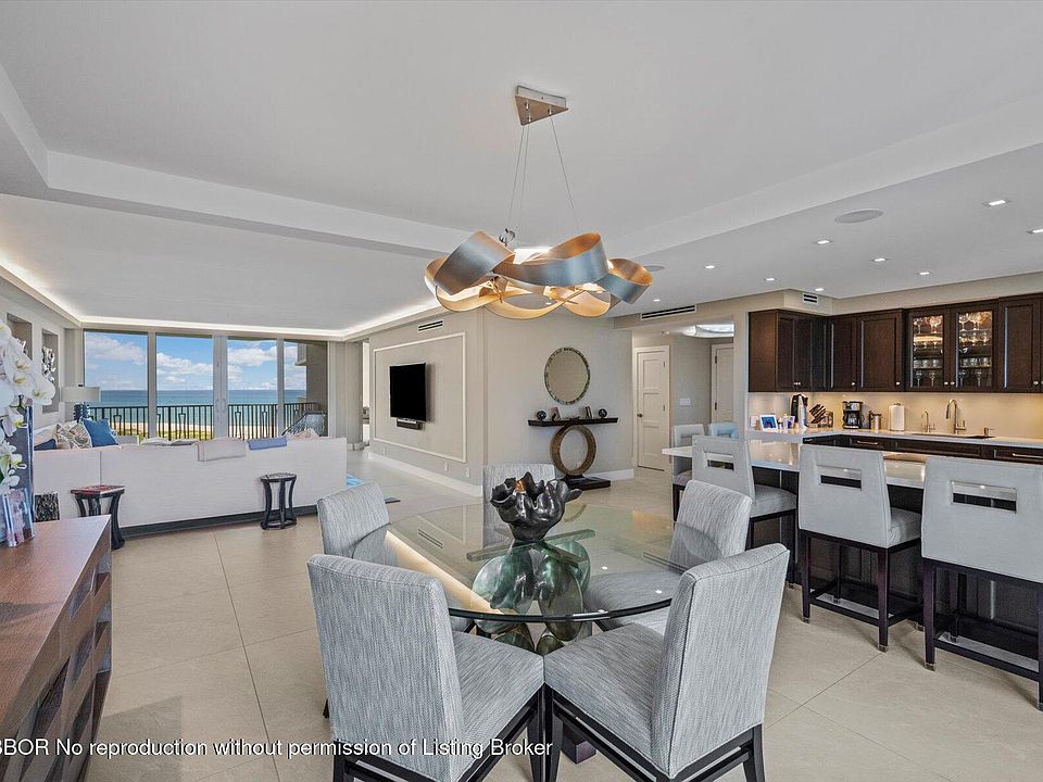 This recently renovated 3-bedroom, 3-bath residence is truly stunning, featuring elegant 48'' porcelain tile flooring throughout, 9' ceilings, custom lighting, and an open chef's kitchen with bespoke cabinetry. The home boasts attractive new bathrooms, a built-in Sonos sound system, flat-screen TVs, a coffered ceiling, and an electronic Murphy Bed in the third bedroom suite and custom closets. Its exceptional floor plan showcases ocean, pool, and Intracoastal views from a 3-sided wraparound balcony. Luxurious furnishings are available separately. The 2500 Building offers first-class amenities, including private beach access with towels and chairs, as well as a updated lobby, hallways, fitness center, spa, resort-style pool area with a pool attendant, community room, and Har-Tru tennis courts. Additional perks include 24-hour manned gate security, 2-car garage parking, a building porter, and up to 2 pets. Located adjacent to the Palm Beach Par 3 Golf Course and just minutes from the Four Seasons, Worth Avenue, restaurants, shopping, PBIA, and area attractions, the building benefits from excellent management and security. Recent upgrades include concrete restoration, new balcony railings, new roofs, and added driveway pavers.