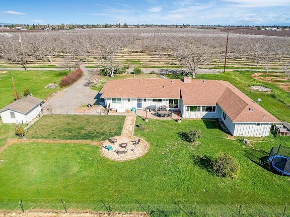 Come and check out this beautiful home in a Private country setting, easy commute to HWY 99 or HWY 113. This home features 4 beds, 3 baths, 2465 sq ft of living space and sits on 1.47 acres, formal dining/office, great room with gorgeous wood plank ceiling & lots of natural light. Open concept, updated family room (drywall/texture/paint/ lighting/ceiling fan) w/ beautiful brick fireplace & exposed beams. Eat-in kitchen with patio access, open to the family room that looks out to the rear of the property. Down the hall find 2 bedrooms, guest bathroom updated with a little farmhouse flare, a spacious master suite with exterior access & a bath. On the opposite side of the home you will find indoor laundry/mud area with exterior access, 3rd bathroom, 4th bedroom & garage access. Outside, enjoy the fenced backyard with mature orange & mandarin trees, fire pit & patio perfect for entertaining. Exterior paint & updated cement fiber siding 2021, vinyl dual pane windows 2020, new roof 2014. Must see to appreciate!