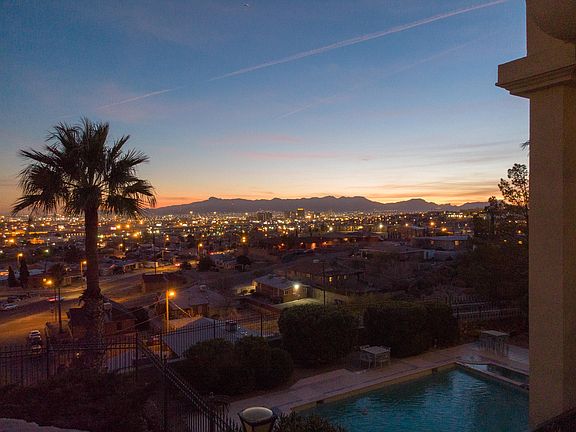 PANORAMIC VIEWS OF El Paso & Juarez. One of a kind 3,200 sq. ft. custom Neo-Classic masterpiece designed and built by Harry Farah, one of El Paso's most famous architects. The pictures say it all! This 9 unit, gated community has all the elegance and convenience of a no-maintenance lifestyle. Situated High on the mountain, this 2 primary suite condo includes a library, 2 marble fireplaces, 2 1/2 bathrooms and walk-in closets. The grand high-ceilings with travertine and granite slab floors, combined with the intricate woodwork add to the qualities that make this property what it is. This spectacular condo has an over-sized double-car garage plus an extended one car garage for plenty of parking and storage. Seeing is believing. Make your appointment today!