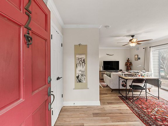Stylish wood flooringCrisp crown molding throughoutOwner renovated backsplashTile countertopsWalk-in closetBeautifully maintained two-story condoVersatile second bedroom