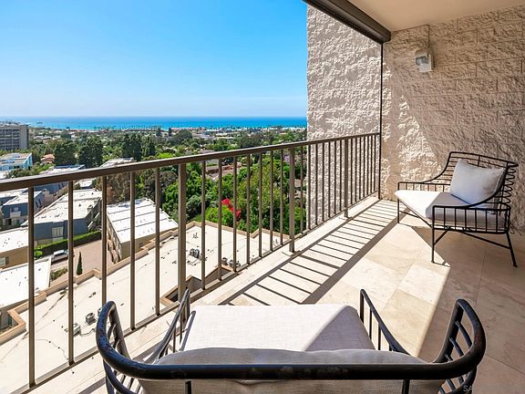 Panoramic ocean views to the west and stunning vistas of Mt. Soledad to the south from this 10th-floor corner residence walking distance to restaurants, shops and Shores Beach. Beautifully remodeled with a modern touch, featuring a sleek waterfall-edge kitchen island, updated flooring, and a contemporary bathroom design. Enjoy resort-style living with premium amenities including two dedicated parking spaces, a pool, spa, tennis courts, BBQ area, fitness center, guest parking, secure building access and guest suits available for your guests to rent on a nightly basis. Ideally located with quick access to the beach, the Village of La Jolla, UCSD, and major freeways, this home offers both convenience and sophistication.