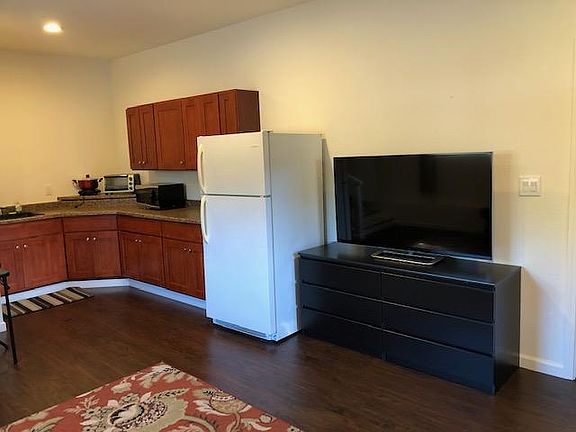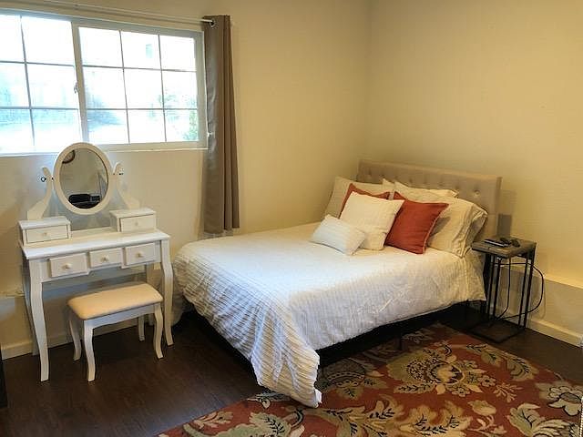 Cozy in-law studio in separate building with private entrance available for rent. Quiet country setting. Bright and sunny unit comes furnished with queen size bed, armoire, make up vanity, basic kitchen, refrigerator and small dining table. Gated parking for one vehicle, no smoking, no pets. Utilities included, move in ready. Lease options negotiable (month to month/6 mo etc) Utilities included. No pets, parking for one vehicle on-site behind gate. No smoking. No access to yard, studio only.