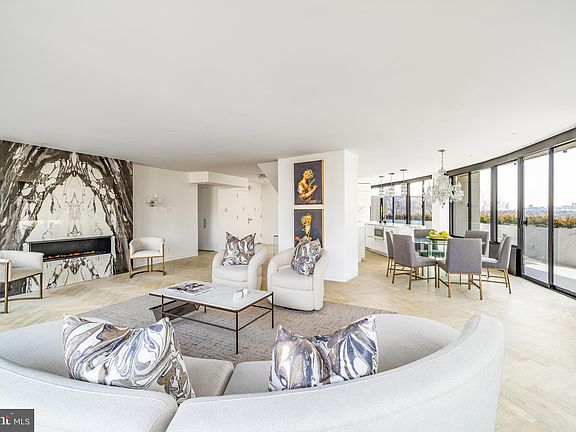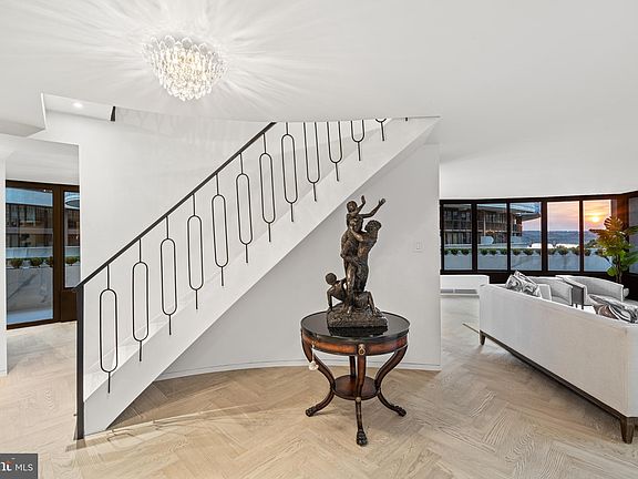 Few landmarks are as deeply woven into American history as Watergate. A symbol of power, prestige, and luxury, the iconic mid-century façade of Watergate East conceals an exclusive collection of residences, among the most distinguished in the city. Within this rarified setting lies #714, a highly coveted two-level residence that seamlessly blends sophisticated design with breathtaking panoramas. A Juliet balcony and the renowned Watergate wraparound terrace offer sweeping, unobstructed views of the Kennedy Center, Memorial Bridge, and Key Bridge stretching over the tranquil Potomac River. Inside, a refined simplicity defines the space, which has been masterfully reimagined to the highest global standards. Wide-plank hardwood floors and a light, airy palette shimmer in the natural light pouring through floor-to-ceiling windows, establishing an ethereal ambiance in every room. The chef’s kitchen is a study in elegance and functionality, featuring imported white marble, sleek European cabinetry, commercial-grade appliances, and designer fixtures—all worthy of an Architectural Digest showcase. Thoughtfully crafted custom built-ins add an artistic touch, while each bathroom evokes the indulgence of a world-class luxury hotel, adorned with substantial, high-end hardware. The layout includes an ensuite bath for the spectacular primary bedroom, a second full bath serving the two secondary bedrooms, and a refined powder room. Below, the lush interior lawn and private swimming pool sparkle in the light, with the soft murmur of Watergate’s iconic cascading fountains providing a serene backdrop. Watergate East offers full-service living with a 24-hour concierge and an array of premium amenities. A designated private parking space and a secure storage unit convey, completing this unparalleled offering. The remarkably reasonable monthly co-op fee includes property taxes, all utilities, HVAC maintenance, cable, internet, and parking. Set along the waterfront in the heart of Foggy Bottom, #714 presents a once-in-a-lifetime opportunity to own a fully reimagined masterpiece in one of America’s most storied and sought-after addresses.