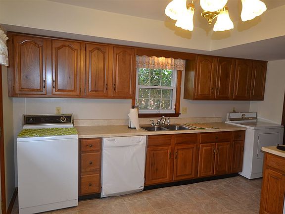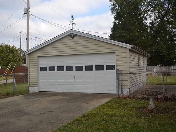Perfect starter home on a corner lot close to shopping, schools and Wesselman's Park. Kitchen has nice raised panel cabinets with new counter tops, slide in electric range, washer & dryer, new dishwasher, and new microwave. Living room & dining room and two bedrooms have new carpet. Fenced in yard and two car detached garage.