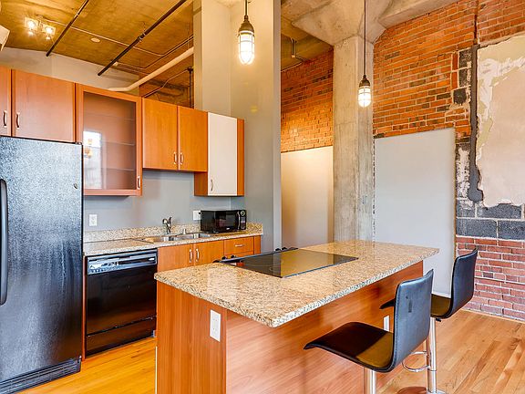 Exposed brickWasher and dryerGranite countertopsWalk-in closetBeautiful kitchen with islandLarge windowsOpen floor plan
