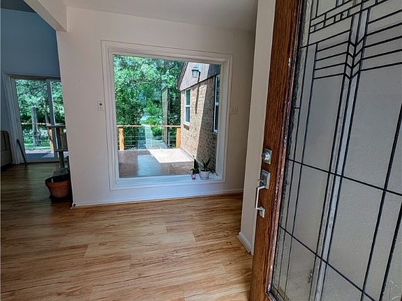 Welcome home as you open a stunning art-deco style glass front door and step into a landing edged by a large picture window filling the home with natural light . With no carpet and vinyl plank flooring you will find this home easy to care for. The high living room ceiling, brick fire place, and built in bookcases create an inviting space. The kitchen is equipped with a large island with stainless range and gas burning stove, Corian single surface countertops and ample countertop space. The formal dining space close to both the kitchen and living space provides many options for you. The two bedrooms share the easily accessible hall bath. The relaxing primary bedroom is flanked by two windows overlooking the backyard. The convenient ensuite and large closet create a comfortable space. The attached garage has a coated flooring and wall of cabinets for storage. Don't miss out on this one! Schedule a showing today!