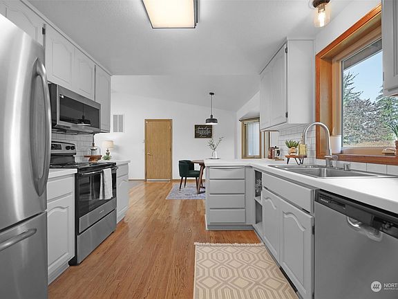 Welcome to this charming rambler nestled on a 1/2 acre in a peaceful neighborhood minutes from Monroe.  Inside you will find a spacious and inviting floor plan with vaulted ceilings and tons of natural light.  This 3 bed, 2 bath home is the perfect combination of comfort and charm. Entertain on the generously sized deck offering views of the private backyard ideal for gardening, or outdoor pursuits. This home features hardwood floors in the kitchen and nook, new carpets throughout, newly painted kitchen cabinets, new ss appliances, free standing wood stove, A/C, updated windows and a new roof installed in 2021. Two car garage with built in cabinets and shelves for extra storage. Plenty of add'l parking space.  Hurry this one won't last!