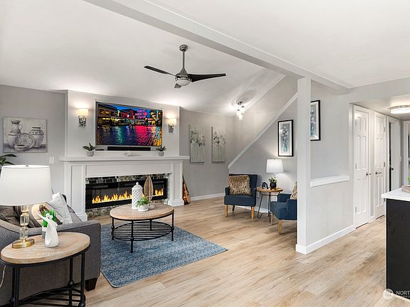 Gorgeous home in Lake Wilderness Country Club neighborhood! Brand new Kitchen, floors and lighting throughout the Main Floor. Stainless appliances with plenty of room for your gathering table. Open concept Kitchen / Family Room with a Wow factor fireplace! Main floor Primary Bedroom and an extra Bedroom that makes for a great Office. Two additional Bedrooms on upper level with a three-quarter Bath. Entertainer's delight in your fully fenced, private backyard! This large corner lot is part of a quiet cul-de-sac in the Golf Course community of Lake Wilderness. Walking distance from Lake Wilderness Park, community center and the Maple Valley Library, or walk up to the golf course for food and fun! Tahoma School District.
