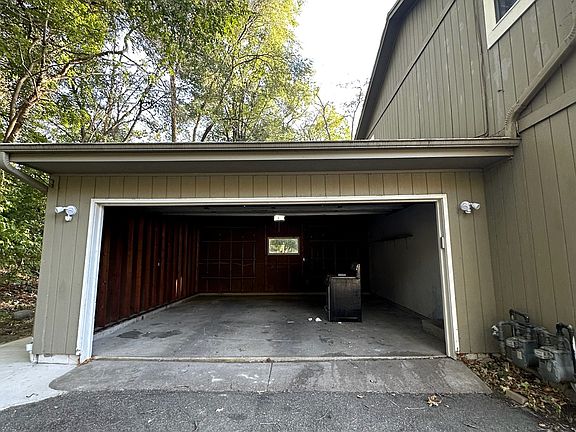 2 car garage with new security lights, and new concrete sidewalk to backyard
